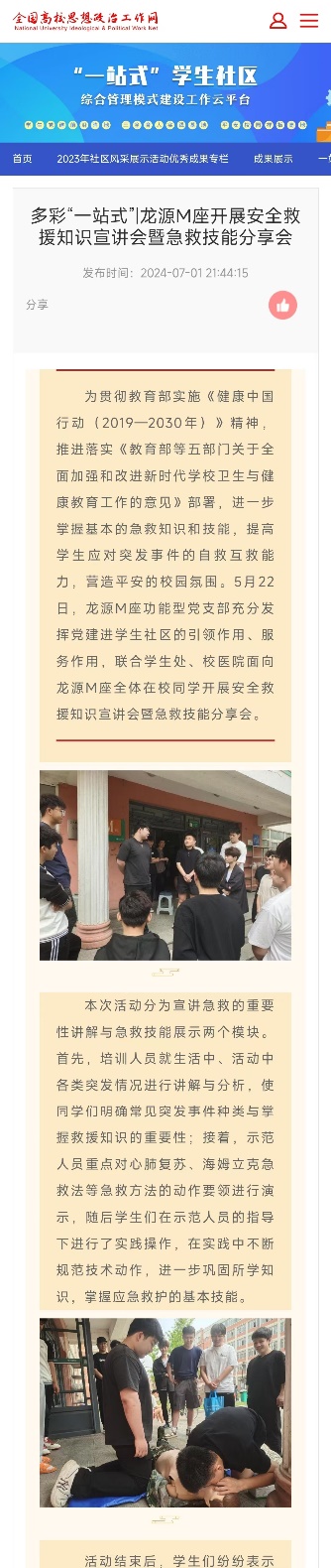 全国高校思想政治工作网:多彩“一站式”|龙源M座开展安全救援知识宣讲会暨急救技能分享会